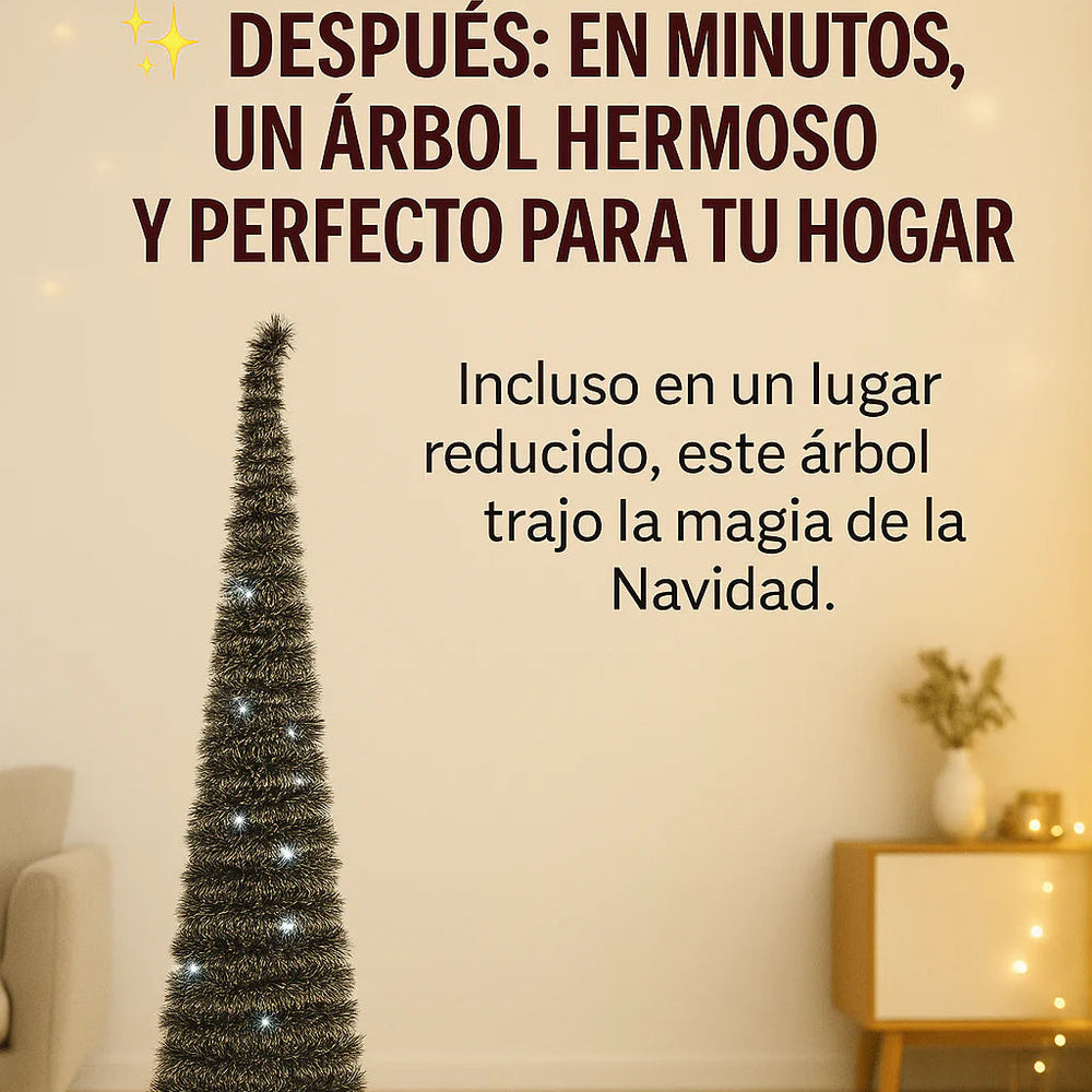 Perfecto para apartamentos, oficinas o casas pequeñas. ¡Transforma cualquier rincón en un espacio lleno de brillo, estilo y alegría navideña! 🎅🎁