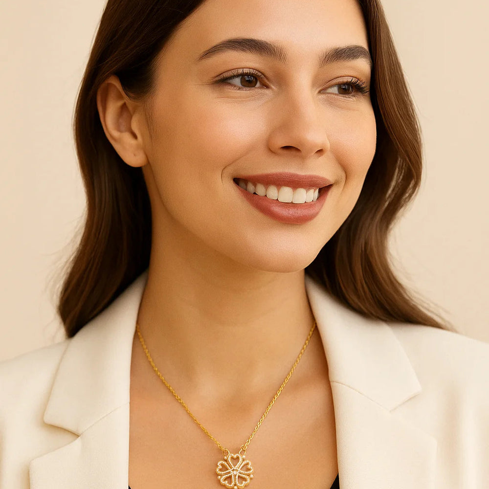 Collar Trébol de Corazón 2 en 1 Baño de Oro 18K