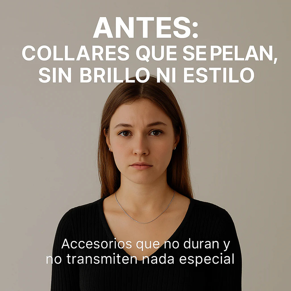 A diferencia de los collares comunes, el baño en oro 18K conserva el brillo por mucho más tiempo si sigues cuidados básicos (evitar perfumes directos, agua con cloro, etc.).