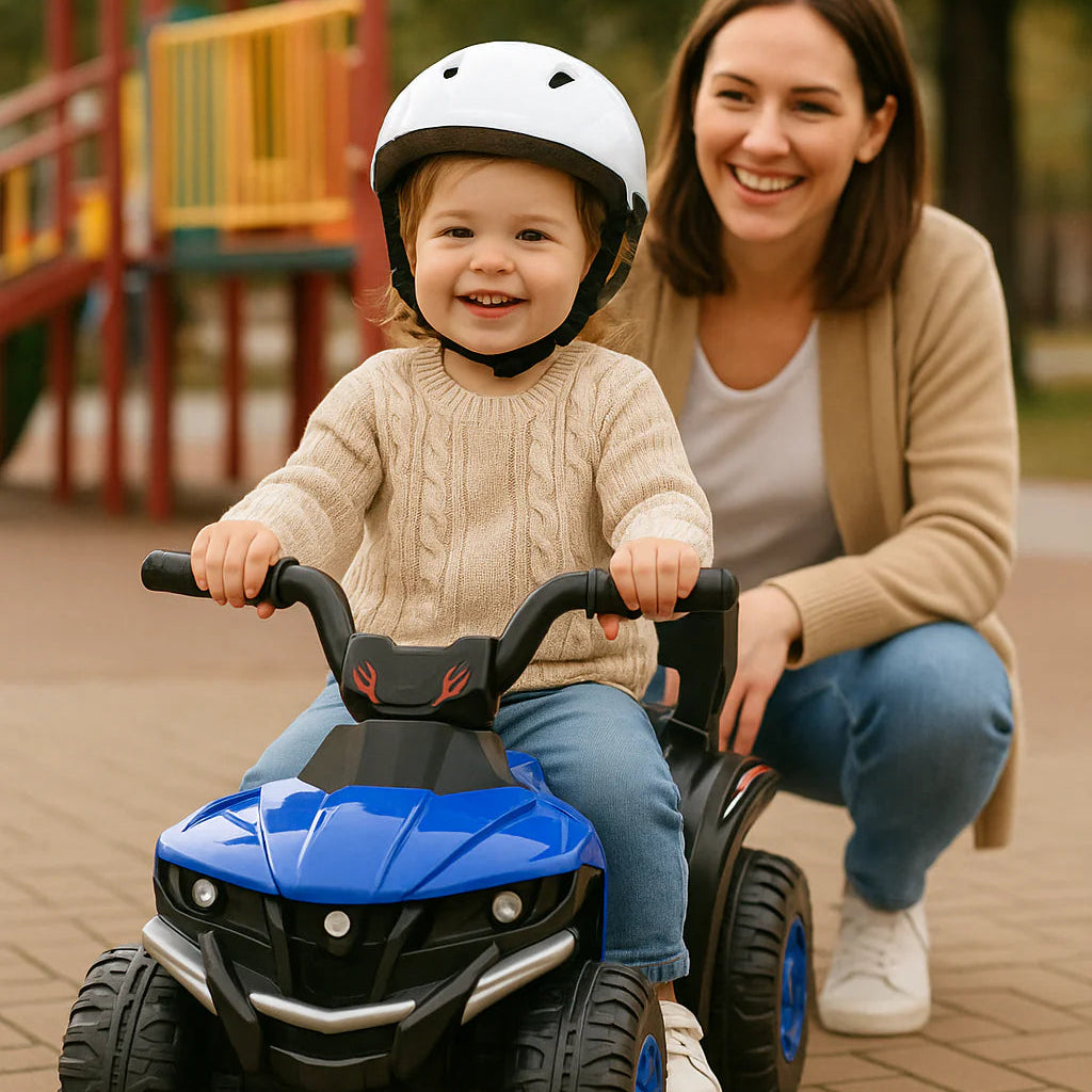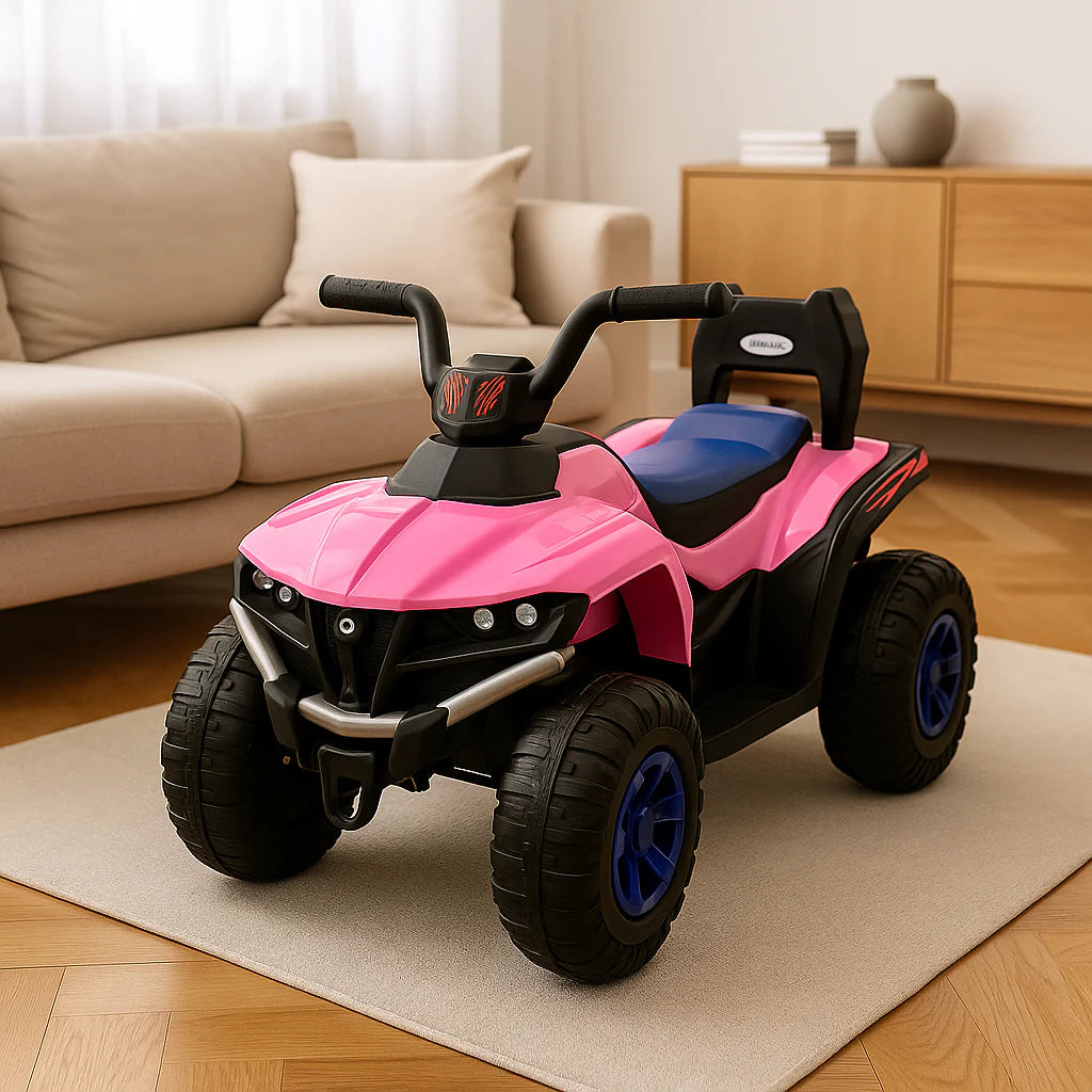 La Cuatrimoto Eléctrica Infantil 6V está diseñada para llenar de emoción y seguridad los días de juego. Su estructura estable de 4 llantas anchas, freno automático y batería recargable la convierten en el vehículo perfecto para niños de 1 a 5 años.Tu pequeño podrá explorar, reír y sentirse independiente mientras conduce un juguete seguro, duradero y con estilo deportivo.