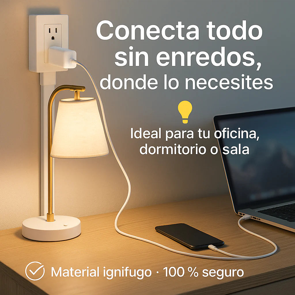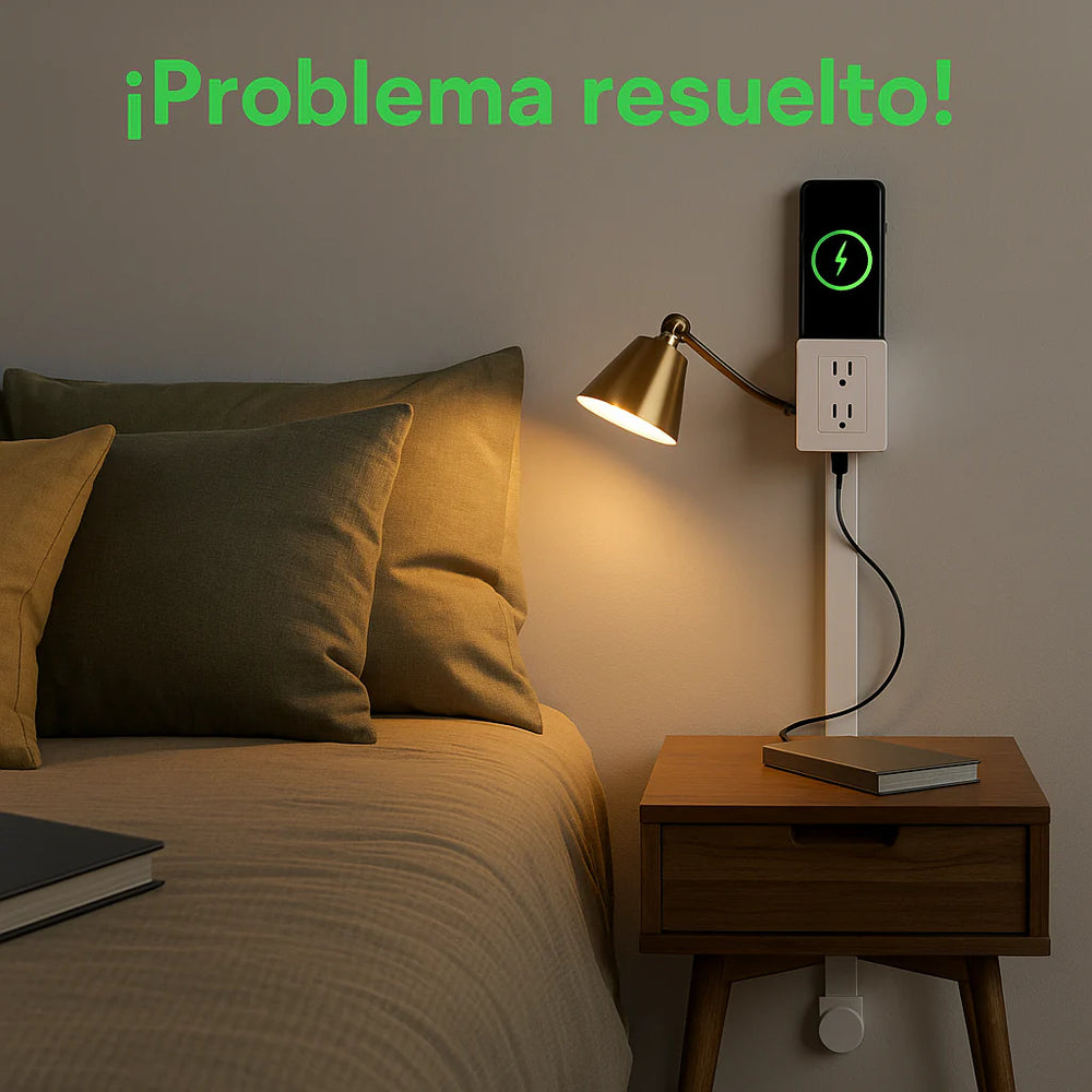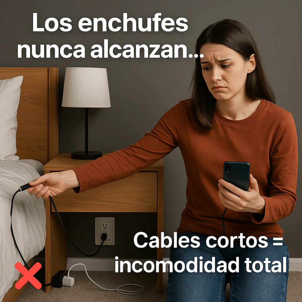 Enchufa el extensor en una toma estándar (80–250V). Queda firme y listo para usar de inmediato.