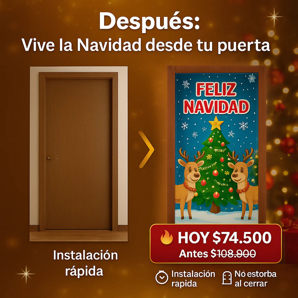 Con nuestras Fundas Navideñas para puertas, fabricadas en tela piel durazno con sublimación digital de alta definición, lograrás que tu casa se convierta en un espacio lleno de magia y tradición sin gastar de más ni perder tiempo en instalaciones complicadas.