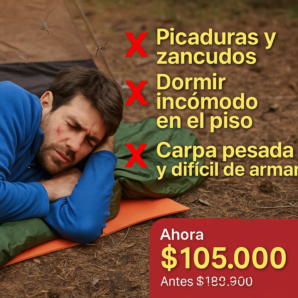Imagina estar en plena naturaleza, escuchando el sonido del río o las olas del mar, respirando aire fresco, sin preocuparte por los mosquitos, ni por dormir incómodo en el suelo. Con nuestra Hamaca Anti-Mosquitos, fabricada con nailon de paracaídas de alta resistencia y red doble densidad, tendrás el descanso seguro que mereces.