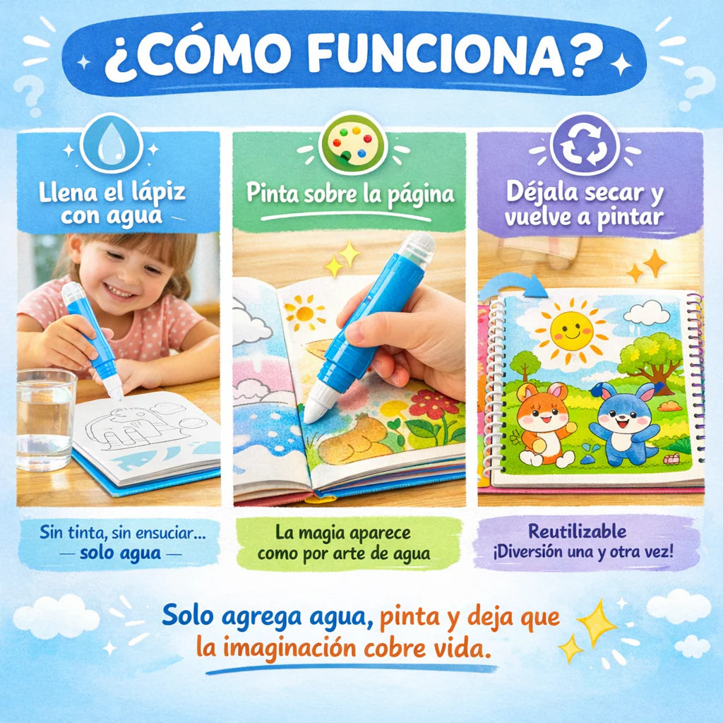 Cero manchas, cero estrés: gracias al marcador con agua, tus hijos colorean sin dañar muebles, ropa ni paredes. ¡Perfecto para casa o para llevar!