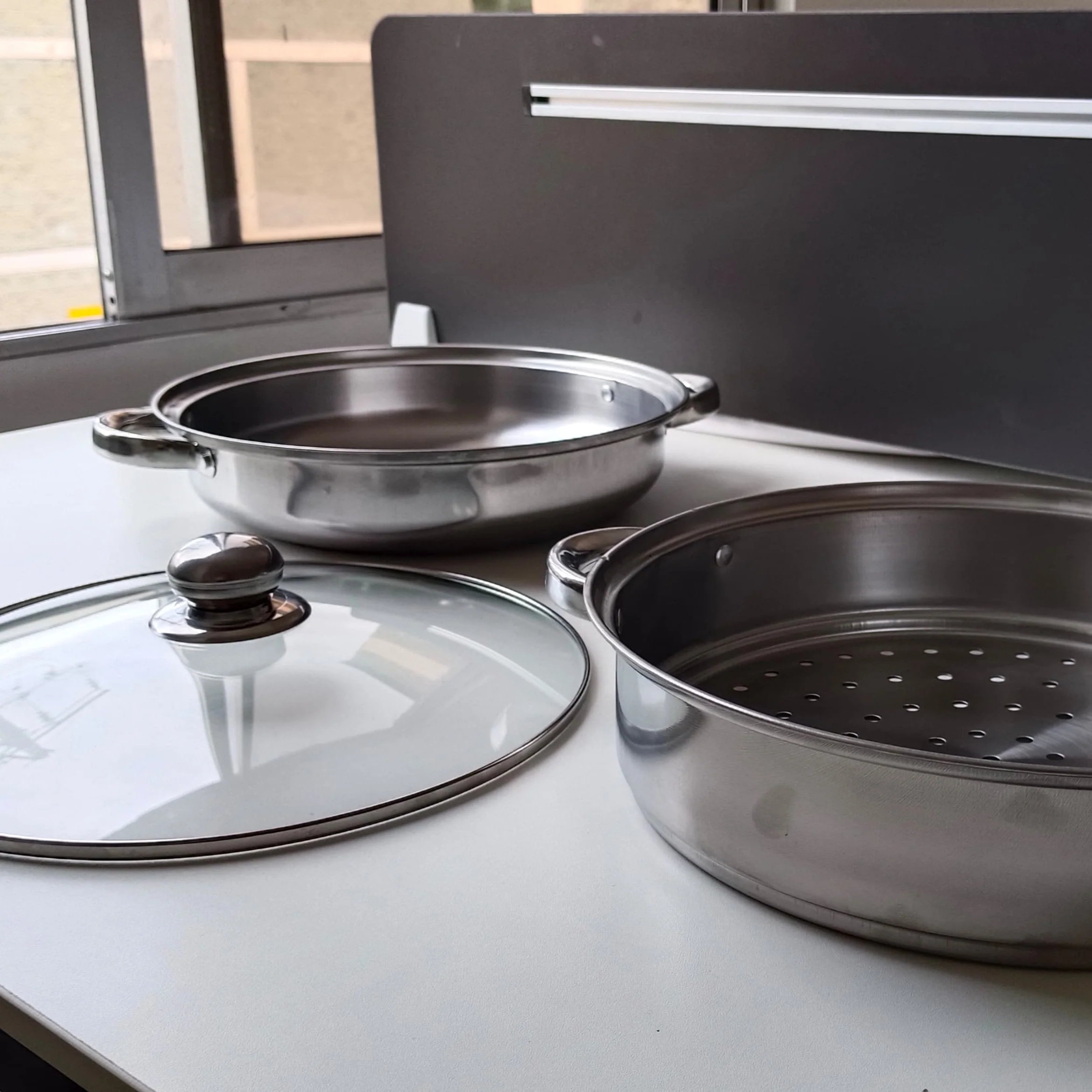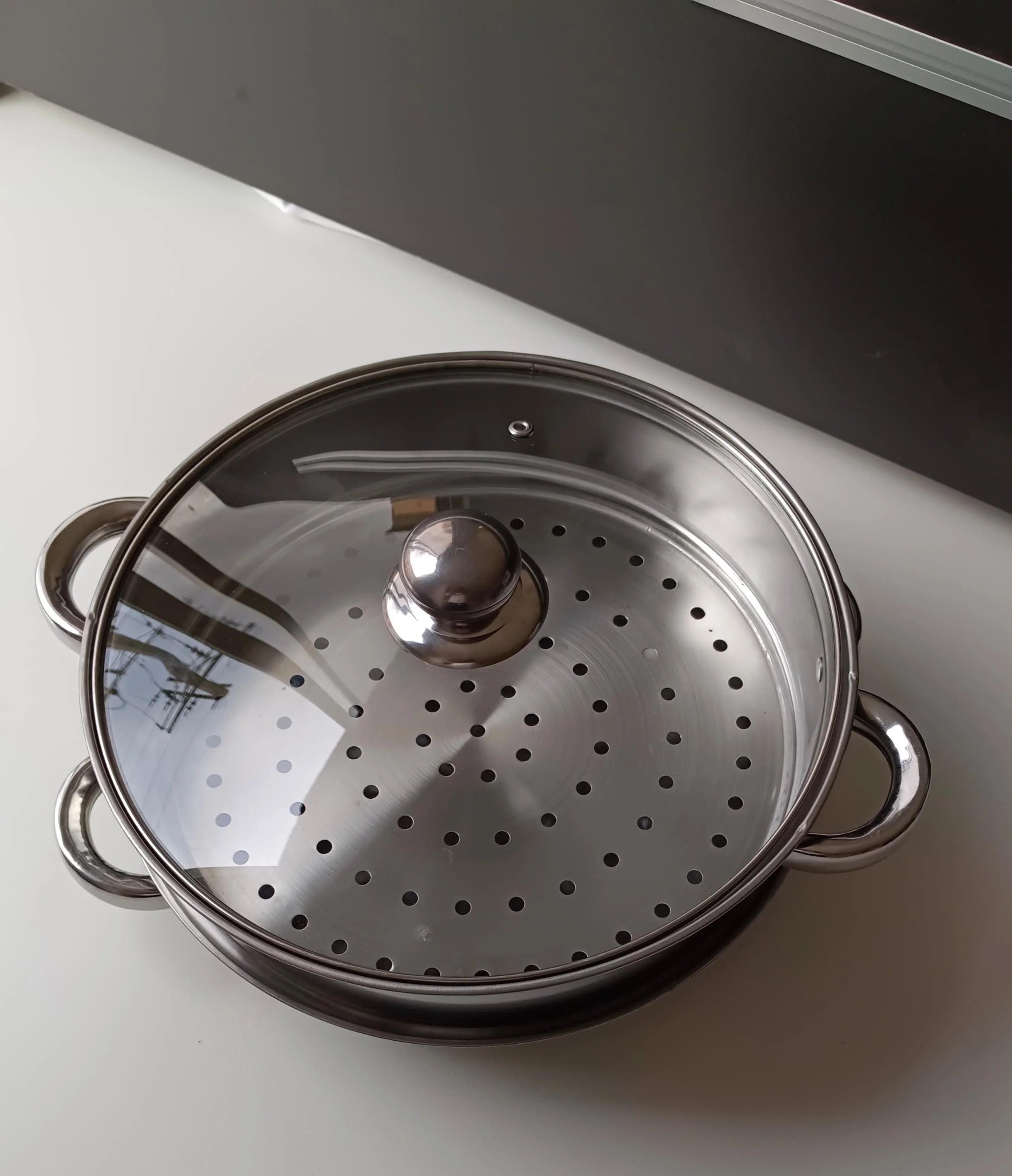 3 en 1 multifuncional Olla base, vaporera perforada y tapa: más funciones en menos espacio.