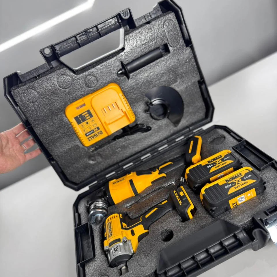 Conquista cualquier desafío en obra o taller con el pack DeWALT XR 98 V: un taladro de alto impacto y una pulidora inalámbrica diseñados para rendir sin pausas. Su motor brushless garantiza potencia constante y máxima durabilidad, mientras que las baterías 98 V XR Li-Ion ofrecen hasta 4 horas de operación continua. Olvídate de cables y enchufes: trabaja donde quieras, cuando quieras.